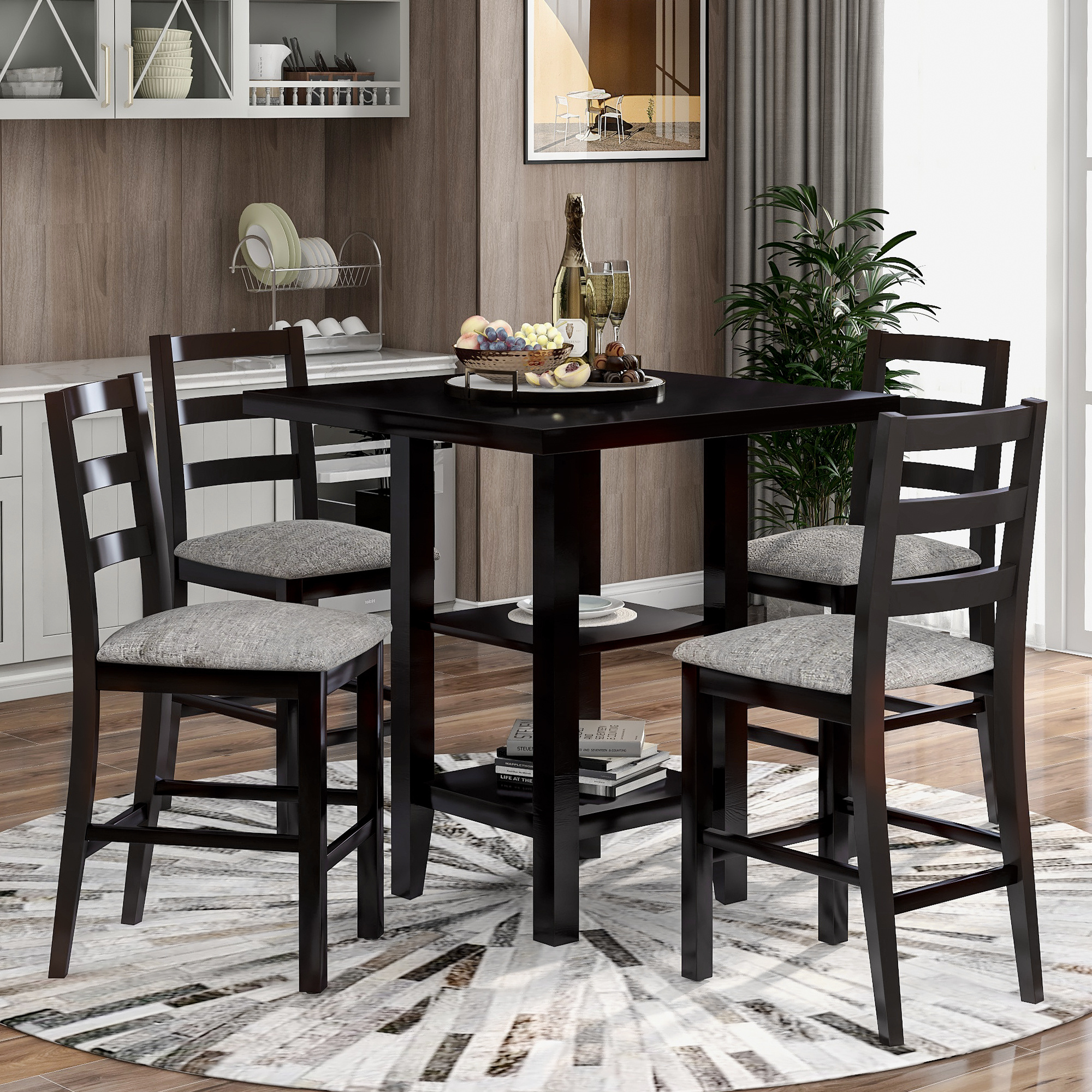 Amazon Com 5 Piece Dining Table Set Wood Counter Height Dining Set Square Kitchen Table With 2 Tier Storage Shelf And 4 Faux Leather Padded Chairs Espresso Table Chair Sets from m.media-amazon.com Espresso kitchen & dining room sets : This simplistic modern dining set designed with a sleek silhouette and finished in a warm espresso lacquer. Get 5% in rewards with club o! Beveled oval shape to make welcoming kitchen space ambiance and finished in rich espresso, the kitchen table can be acquired with hardwood or padded seat chairs. With the table, 4 coordinating dining chairs are also included, with the chair seats matching the table top's rustic weathered wood. 4.5 out of 5 stars. Ratings, based on 161 reviews. Crafted from acacia hardwood with mango wood veneers in a rich russet brown hue, the table features a fixed round tabletop and four chunky square legs, while a convenient lower shelf provides a perfect platform for cookbooks, table linens, or other tableside essentials.